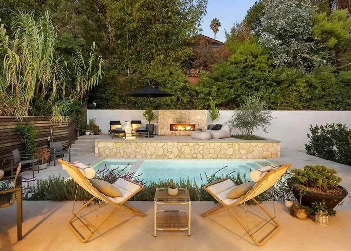 The 3-bedroom Hollywood Hills Villa By Universal - Pool - Dogs Ok Los Angeles offers proximity to nearby tourist spots, such as Jerome C. Daniel Overlook above the Hollywood Bowl, situated a mere 1.6 km away.